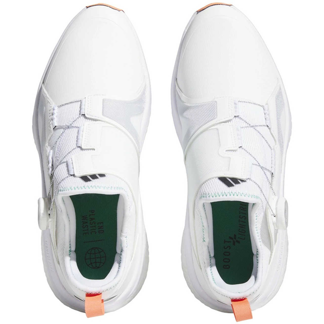 The most comfortable shoes in golf. The men’s adidas Solarmotion BOA golf shoes are designed for extended rounds through the longest days of summer. A combination of Lightstrike and BOOST energizes every drive while offering maximum comfort. The BOA Fit System lets you micro-adjust for a precise fit with the turn of a dial. A Gripmore rubber outsole makes for a confident stance and easy all-day wear. Made with a series of recycled materials, this upper features at least 50% recycled content. This product represents just one of our solutions to help end plastic waste.