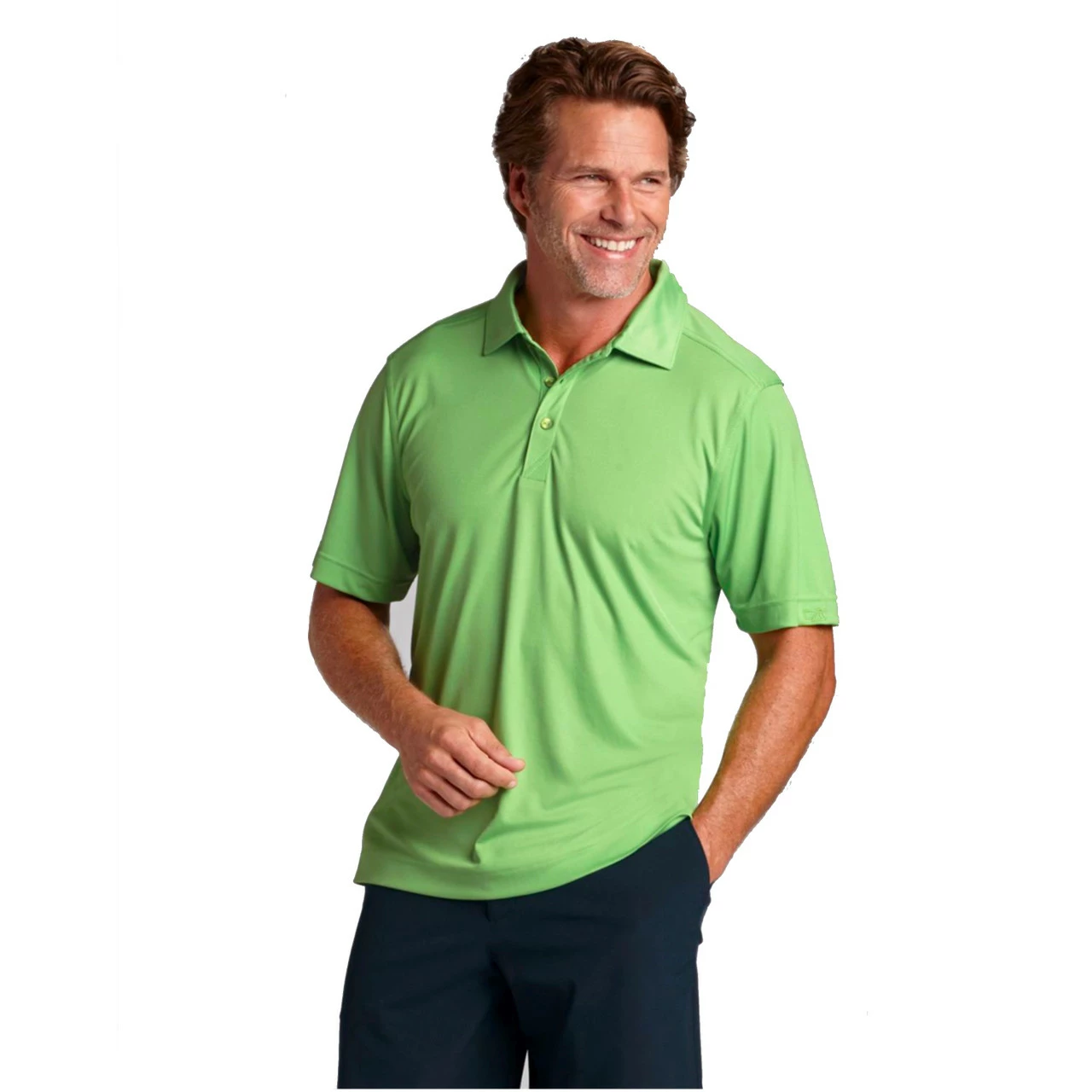 Perform your best, whether on the links or making a sales presentation. This moisture-wicking, machine-washable, 100% polyester double knit square jacquard polo stands out from the crowd. With 50 UPF sun protection, self collar, self-fabric neck tape, forward shoulders, open sleeves, and side vents, this style is designed to keep you cool. The three-button placket with diagonal stitching, bold colors, and tonal C&B pennant embroidery ensures you look collected, too. The lady’s style adds a subtle gathering at the front of the raglan sleeves for stunning style.