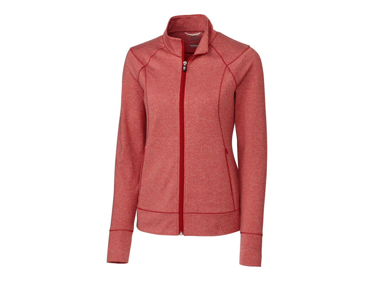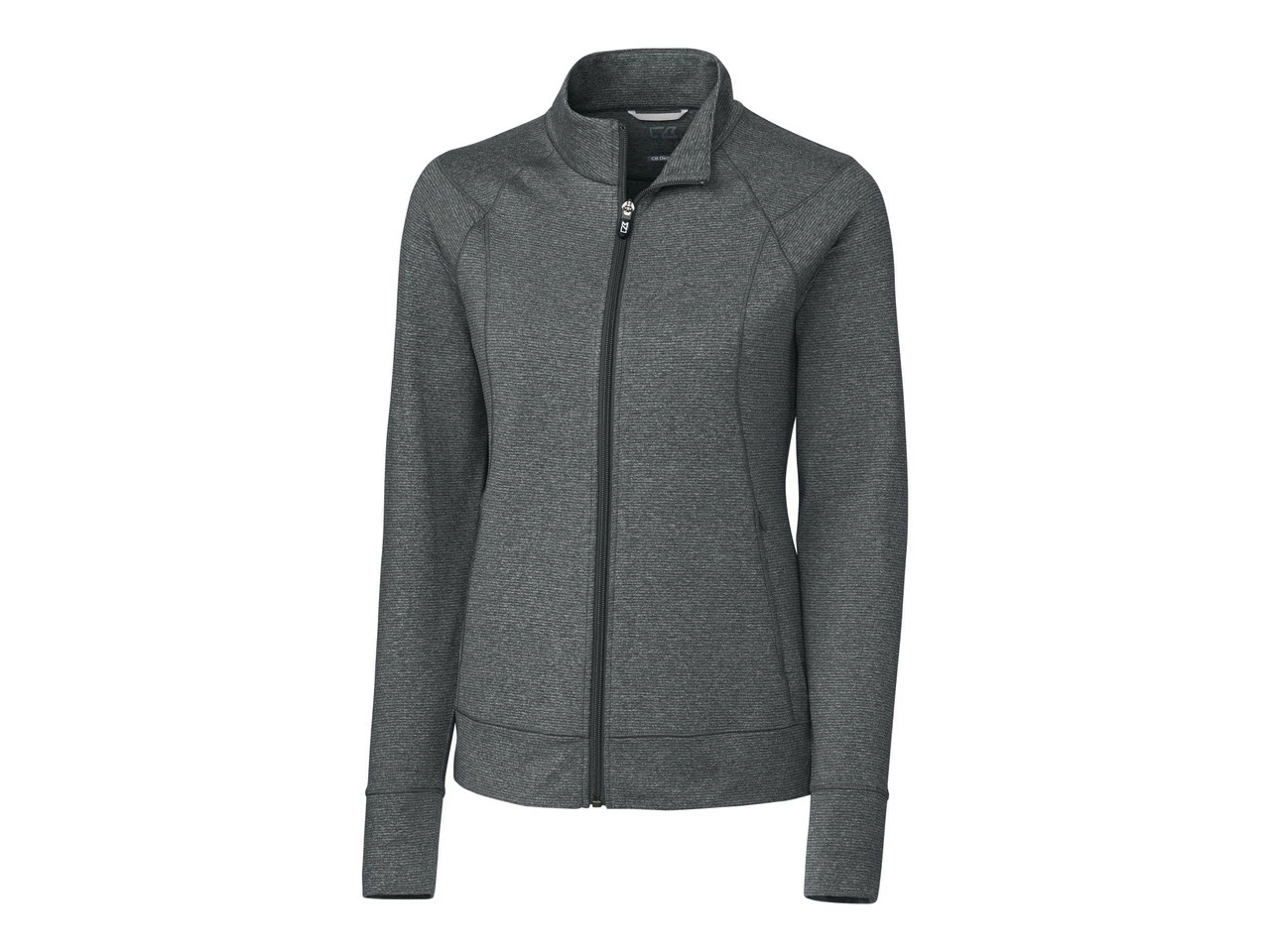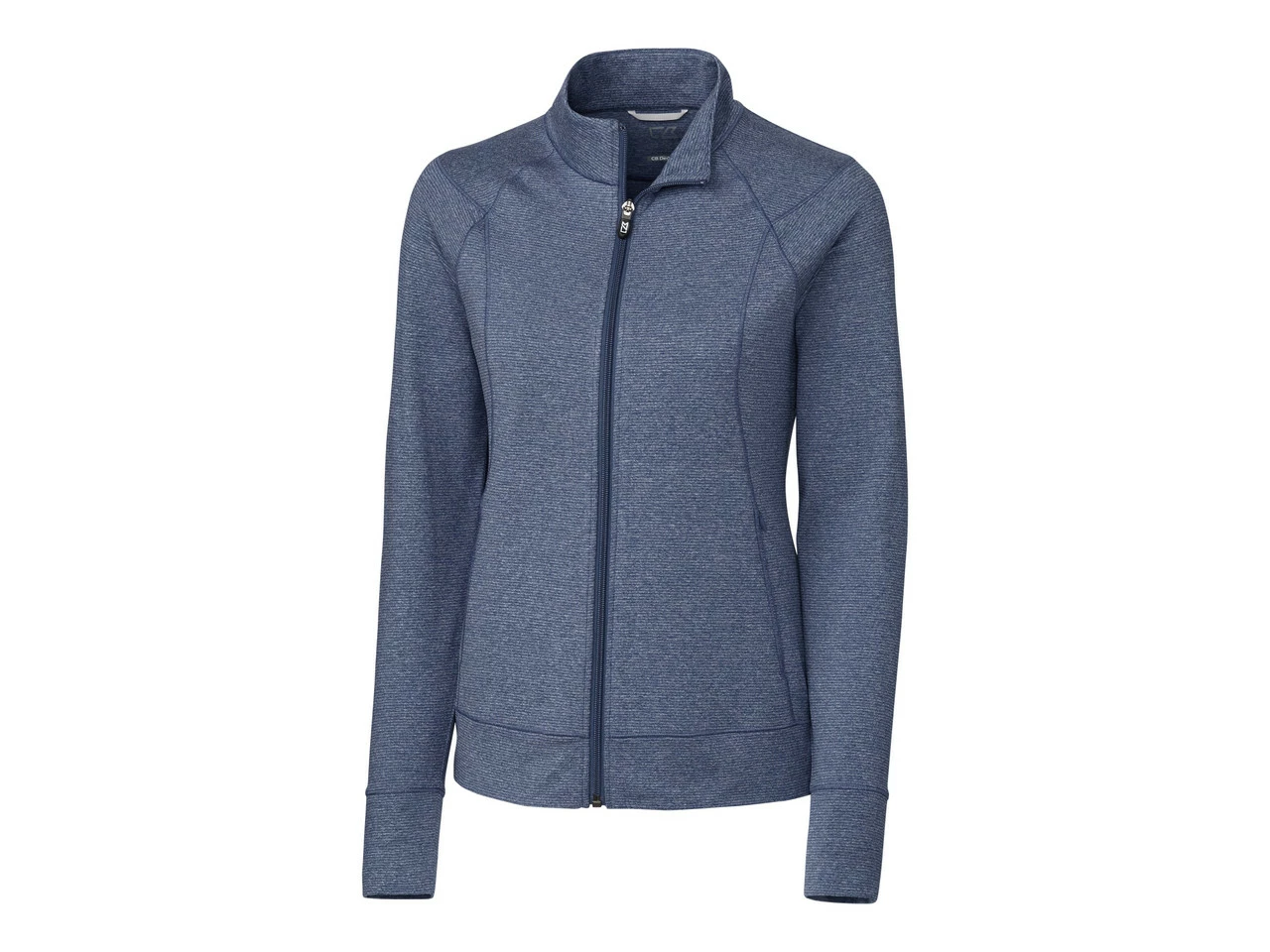 The Shoreline Jacket features a subtle mélange tonal stripe pattern and the poly-spandex fabrication has a brushed back fleece interior that is soft and warm.