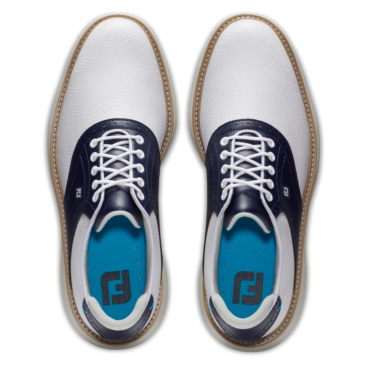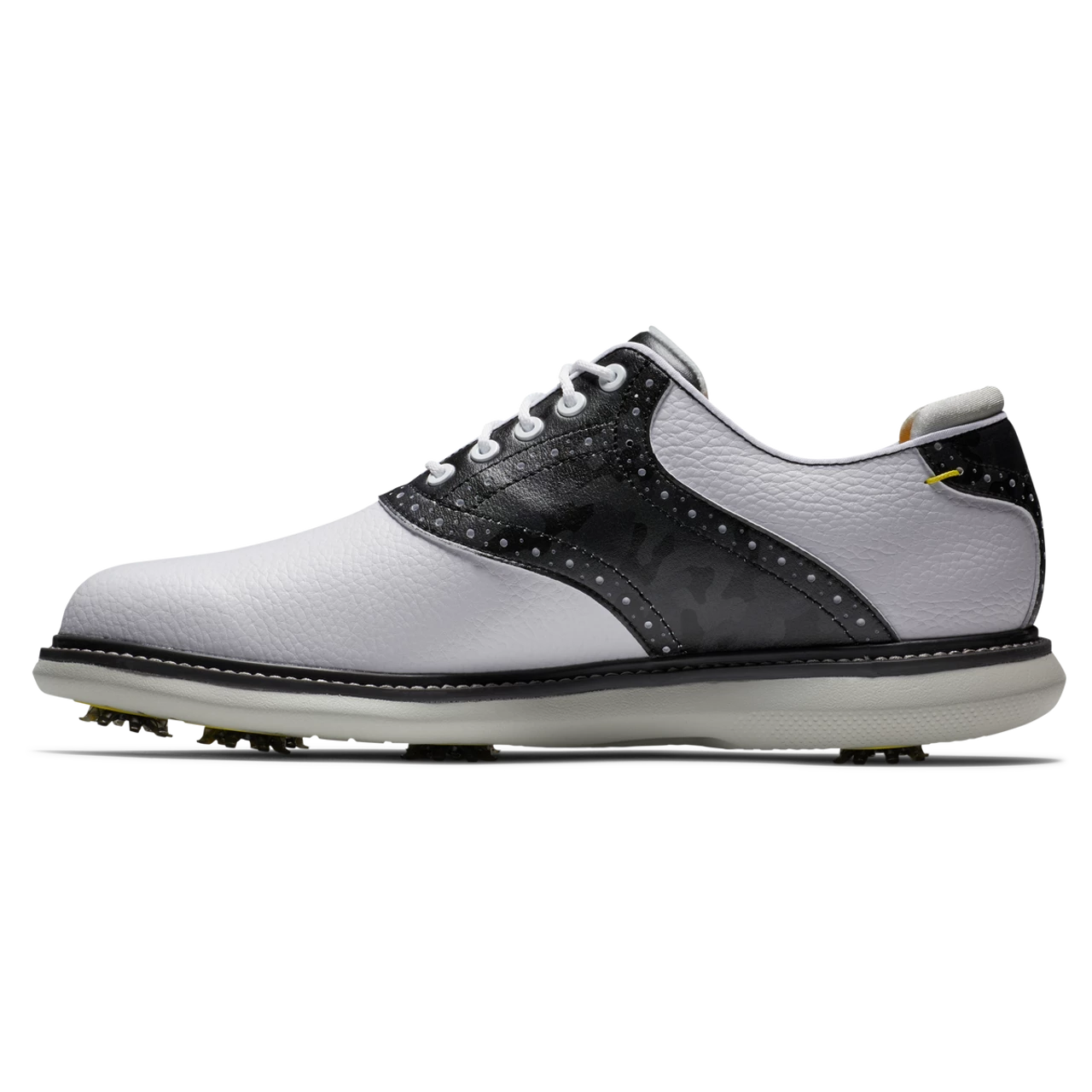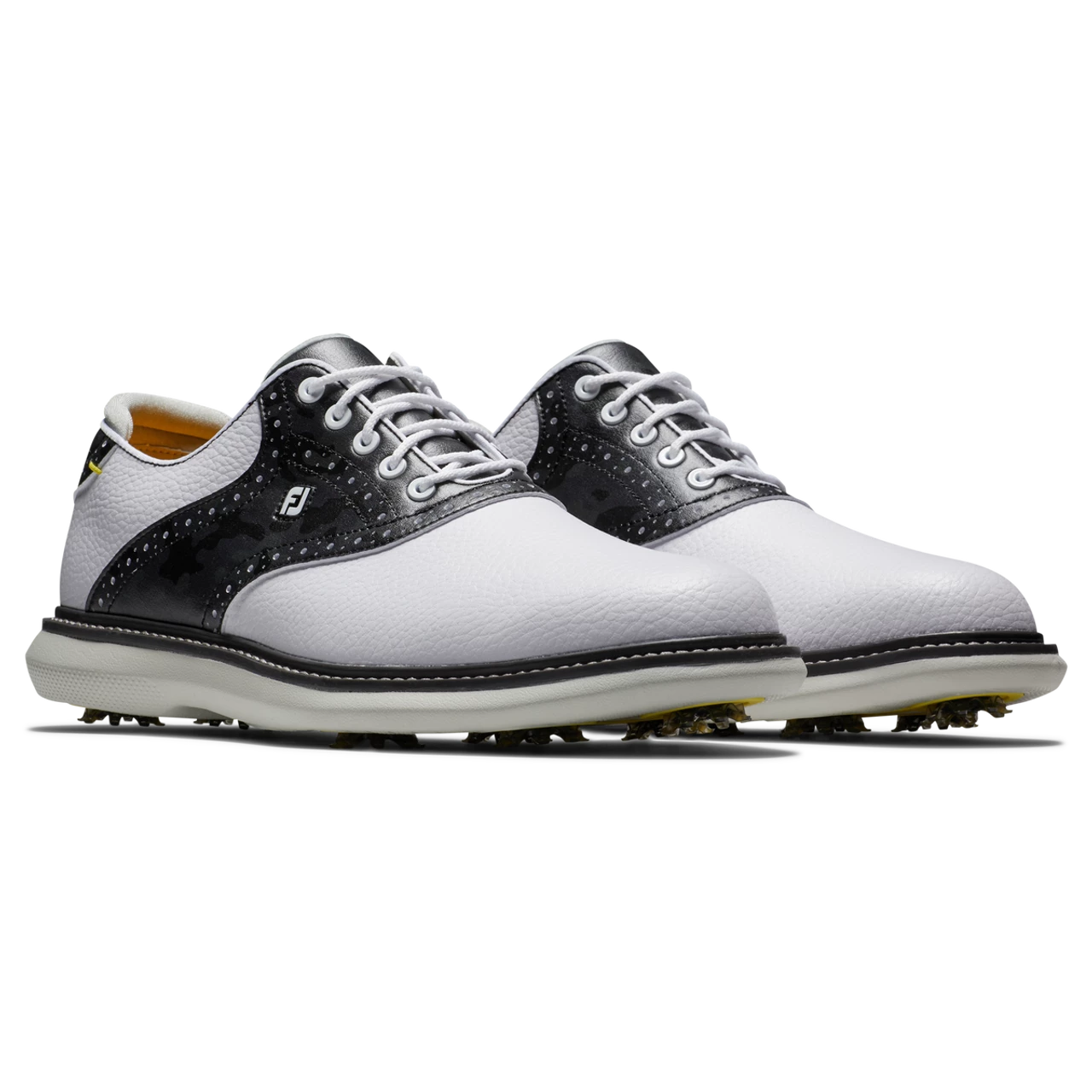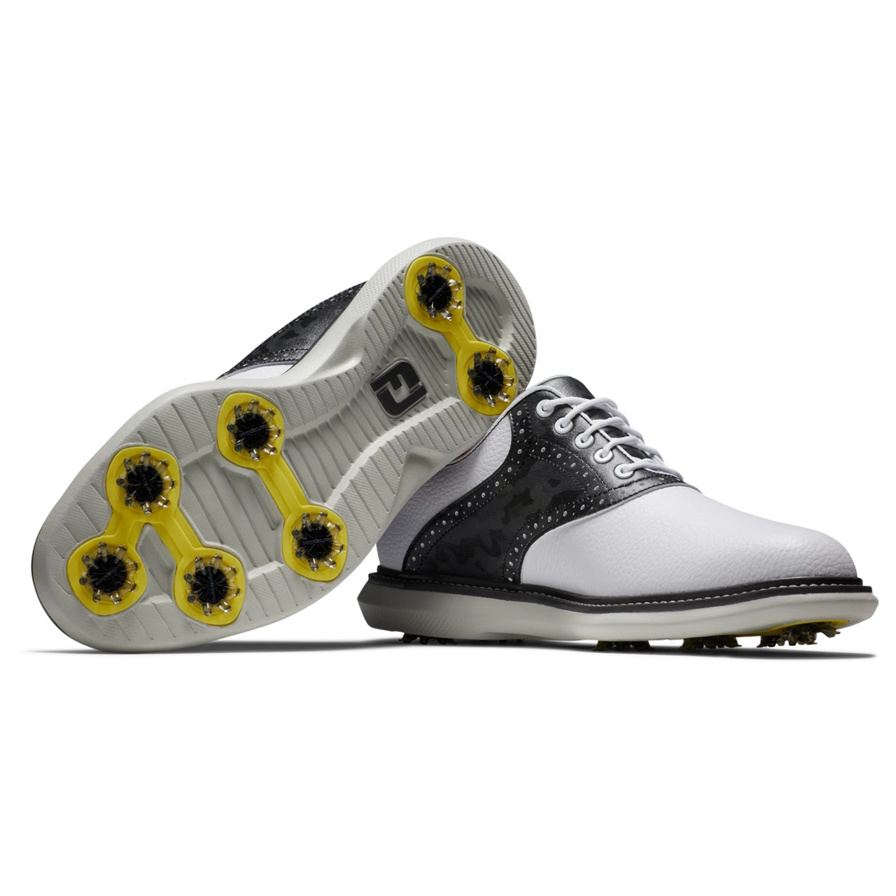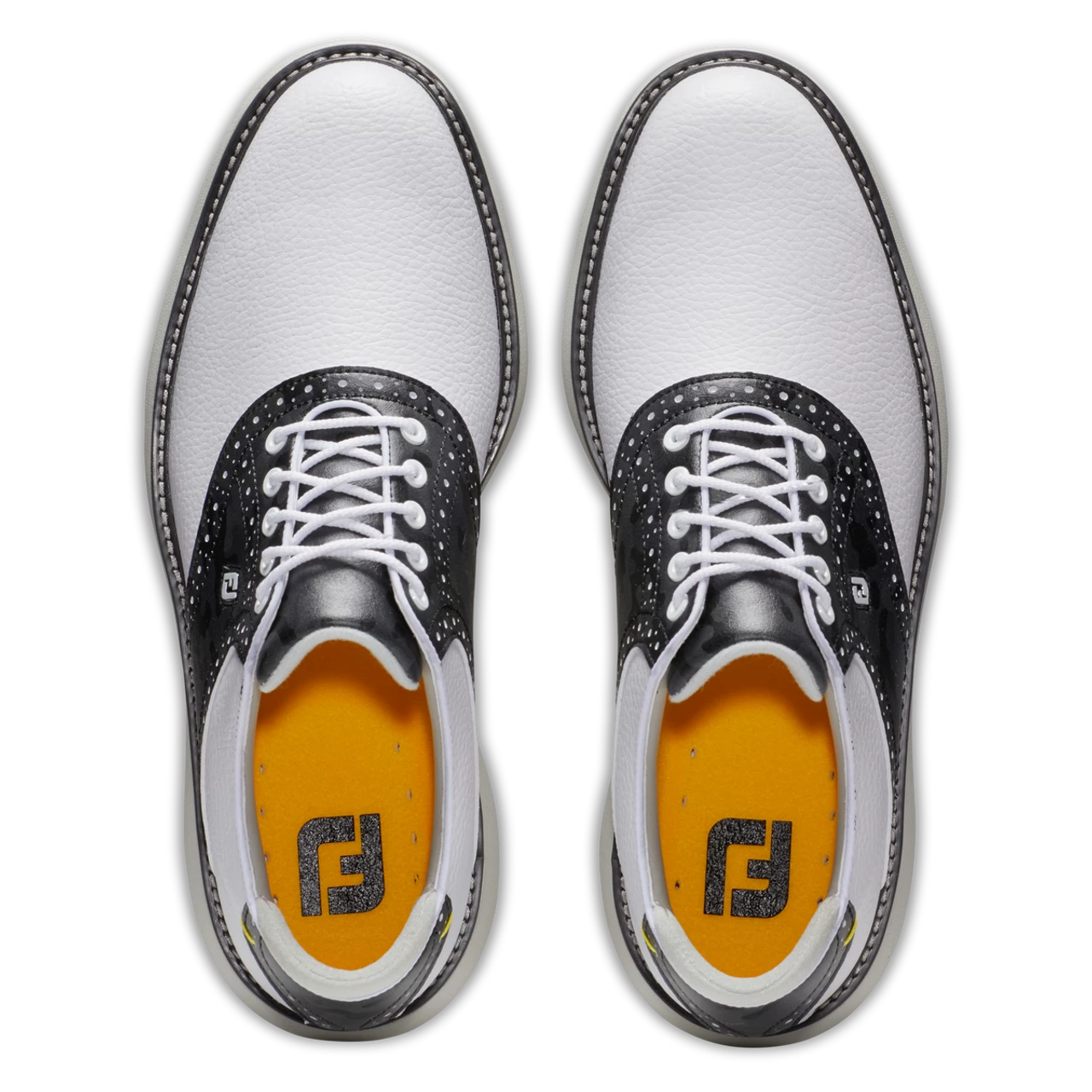 The FootJoy FJ Traditions Saddle Golf Shoes offer complete traction and can be easily maintained round after round. Lightweight comfort and super-cushioned foam deliver an incredibly flexible and comfortable ride. FJ, The #1 Shoe in Golf.