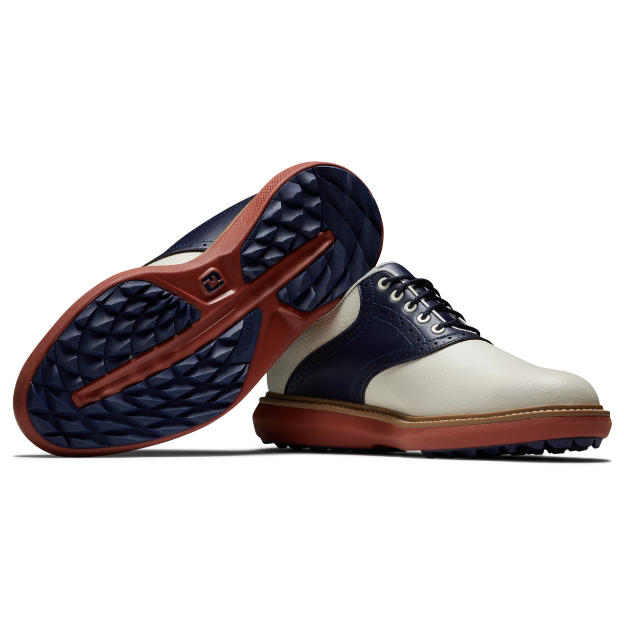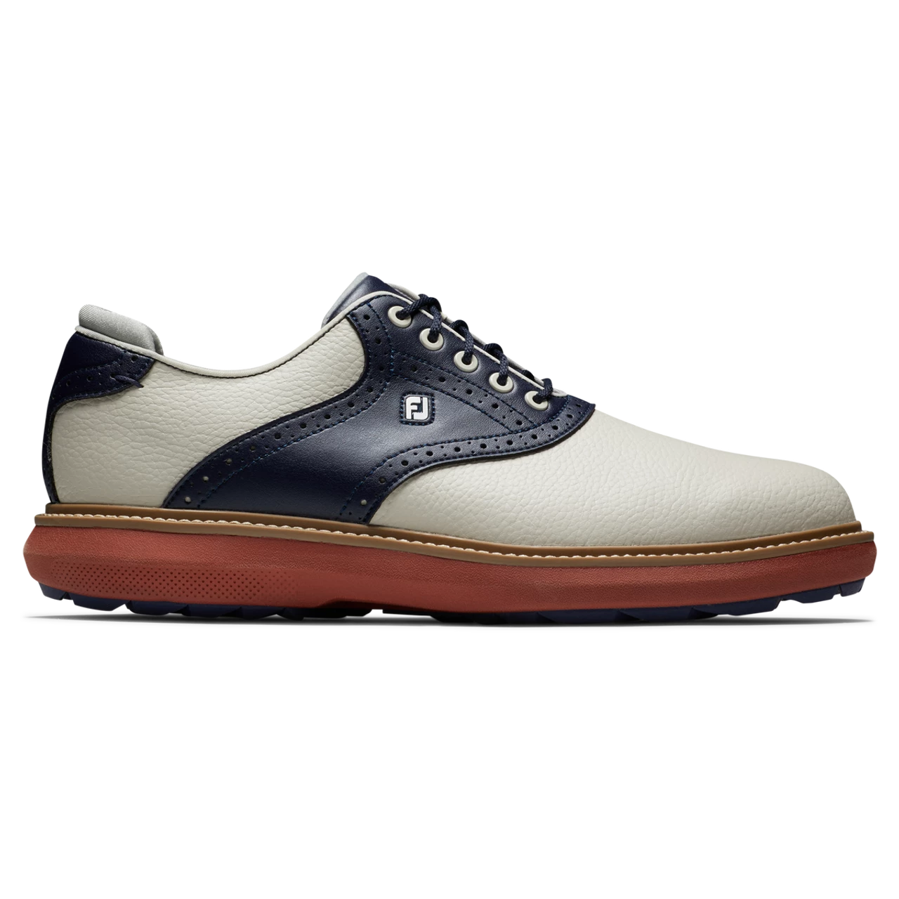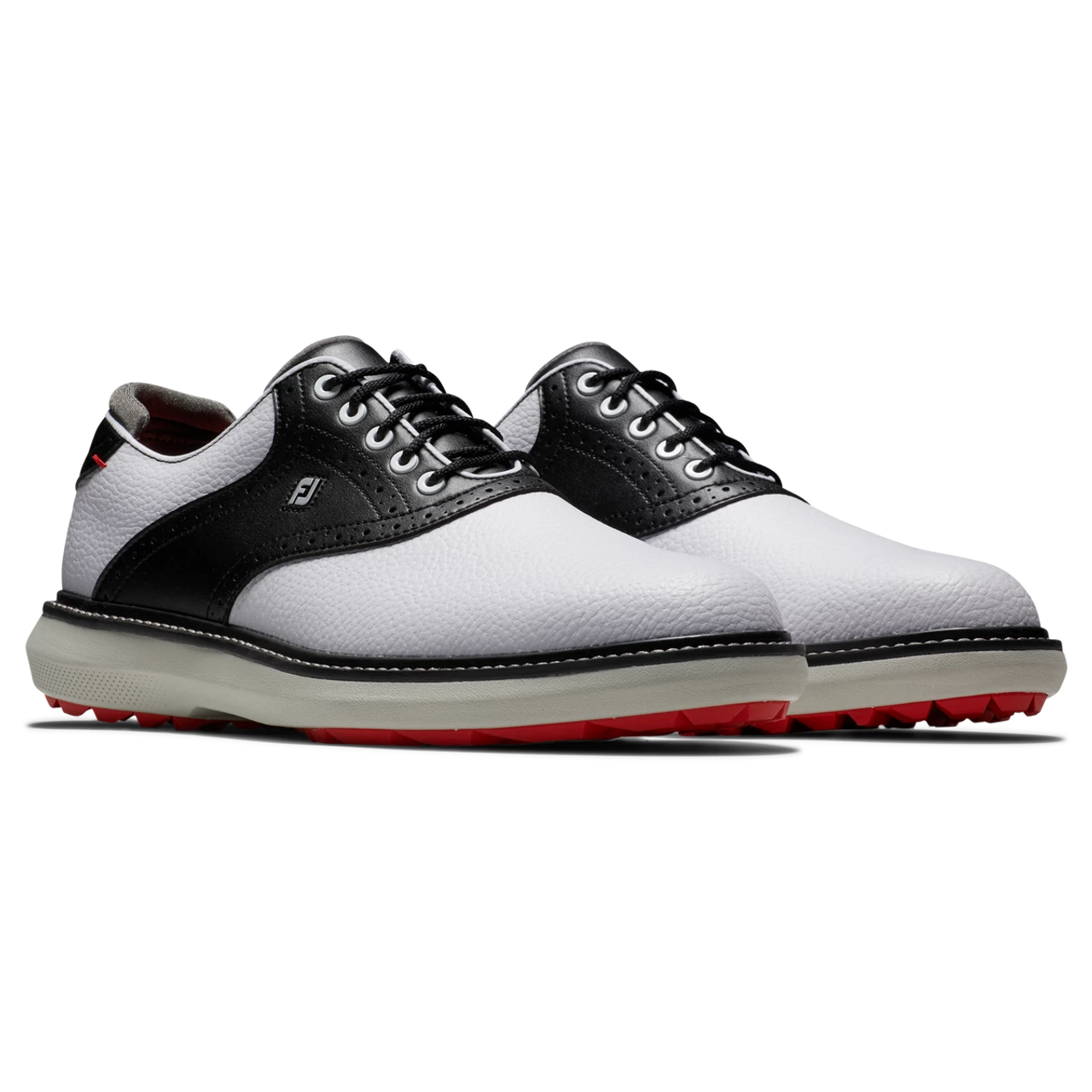 The FootJoy FJ Traditions Spikeless Golf Shoes offer complete traction and can be easily maintained round after round. Lightweight comfort and super-cushioned foam deliver an incredibly flexible and comfortable ride. FJ, The #1 Shoe in Golf.