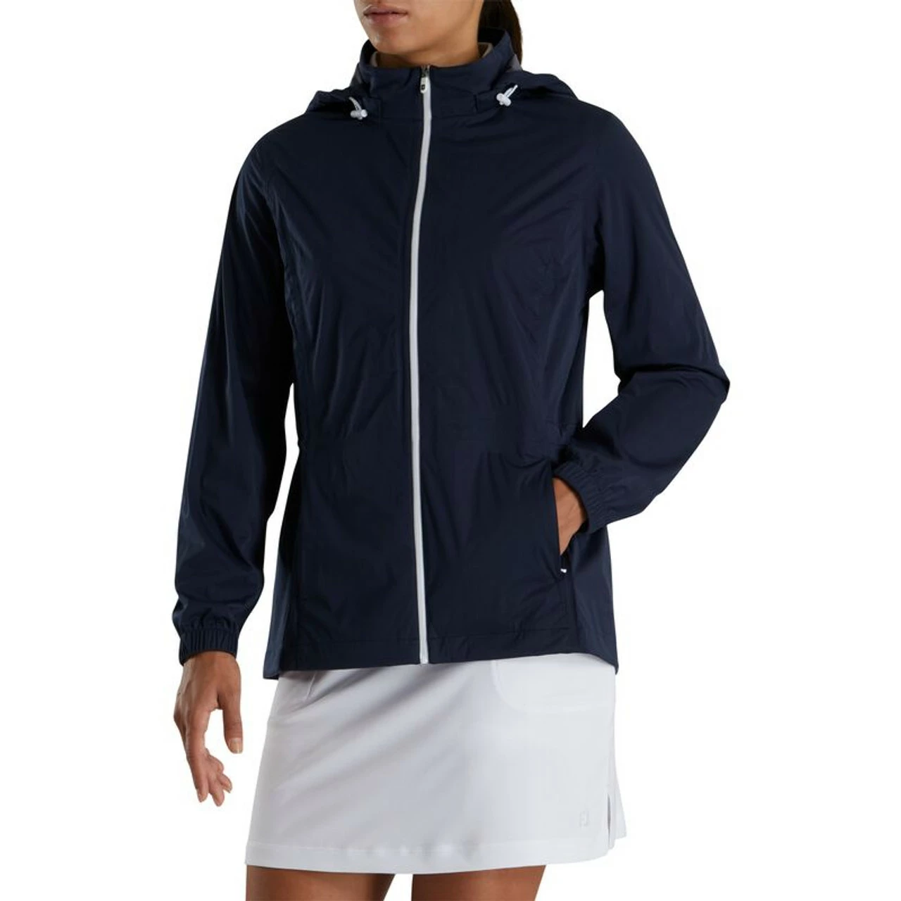 The FootJoy Womens HydroKnit Jacket is constructed from 100% waterproof fabric that delivers breathable protection for golfers in cool, windy and rainy conditions. Make Every Day Playable with women’s golf outerwear.