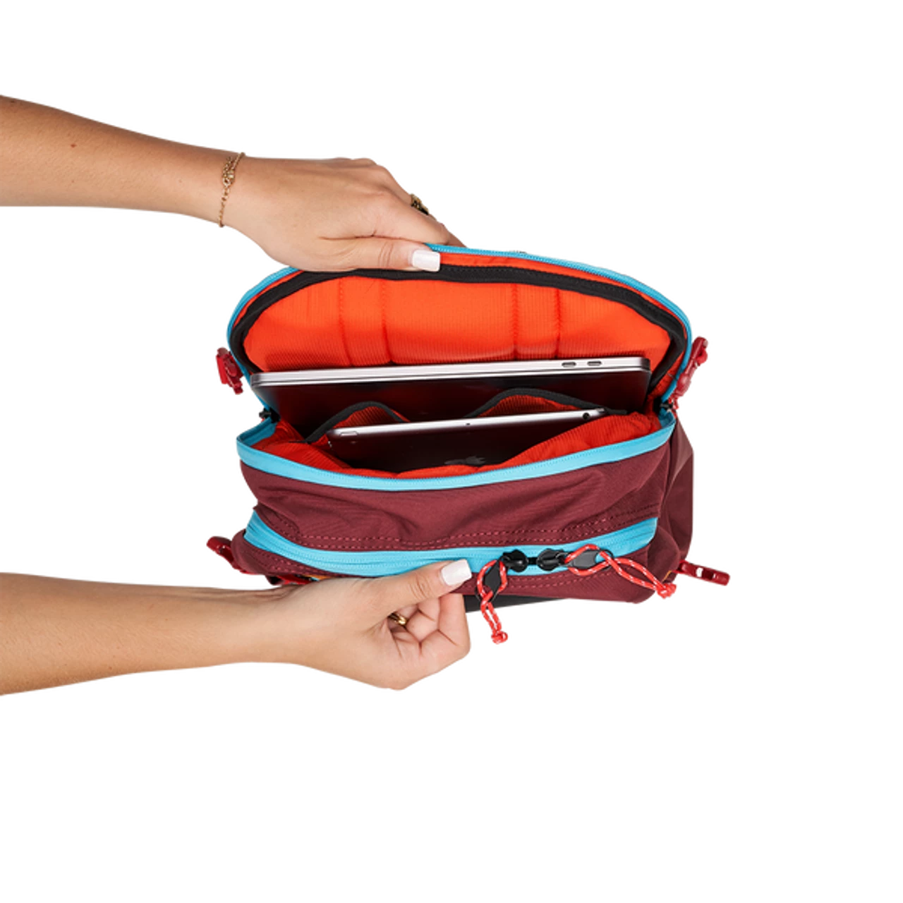- Two large volume water bottle pockets