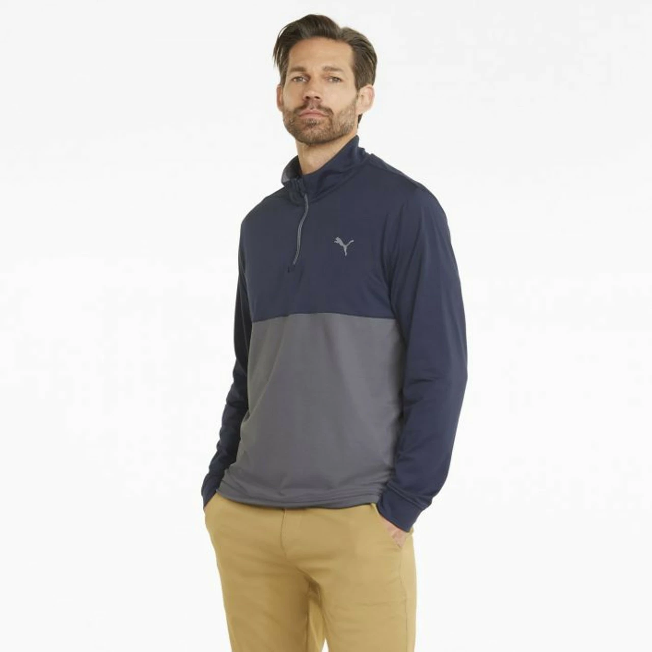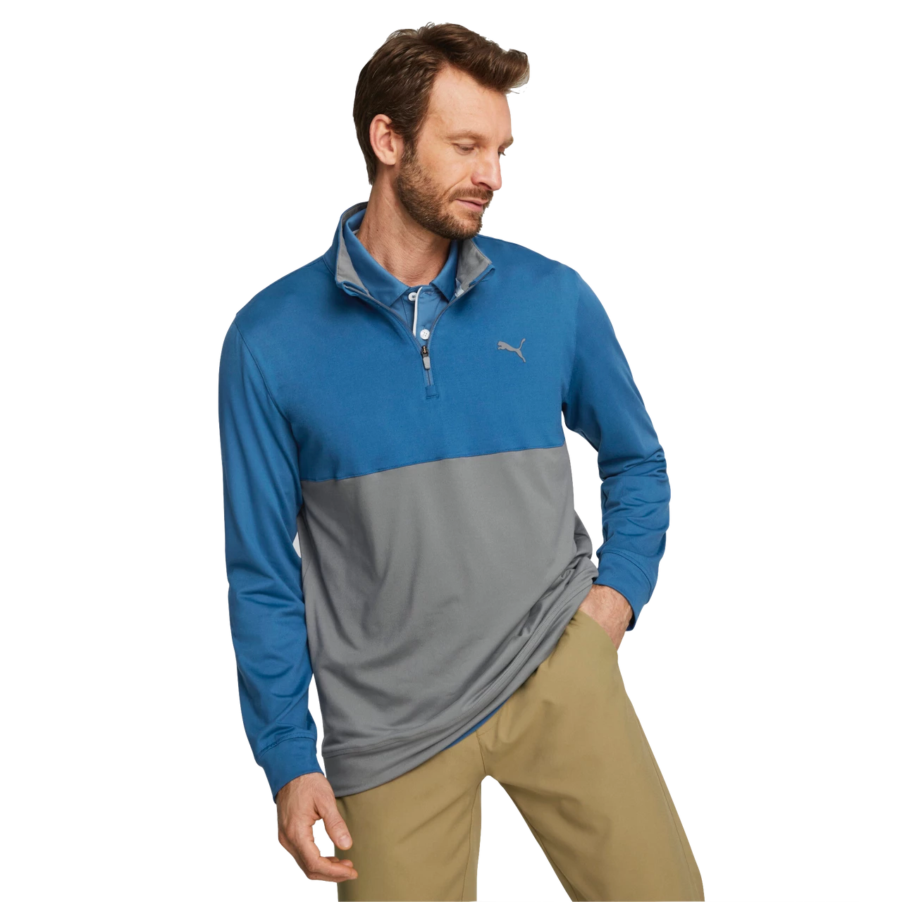 Your staple 1/4 zip has a new name. Layer up during early morning rounds in the performance-supporting Gamer Colorblock.