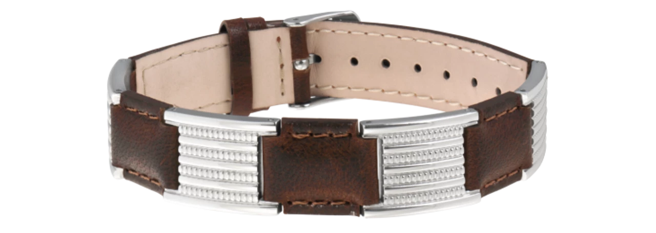Sabona Brown Leather Dress Stainless Magnetic Bracelet